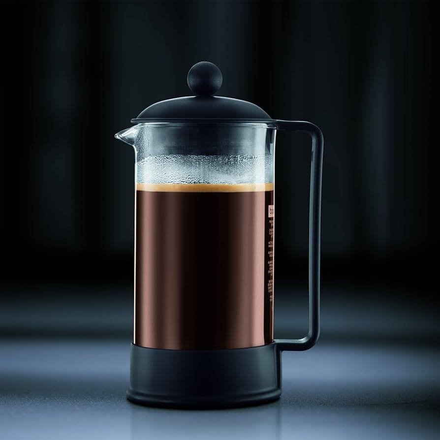 Bodum French Press 34oz borosilicate glass carafe with stainless steel plunger creates full-bodied 4-minute immersion brews unlocking maximum oil extraction universally appreciated by enthusiasts everywhere. Classic Danish design withstands daily thermal shock gracefully serving family-sized batches effortlessly every time without fail. Professional bold coffee extraction accessible through simple plunger mechanism perfectly reliable always.